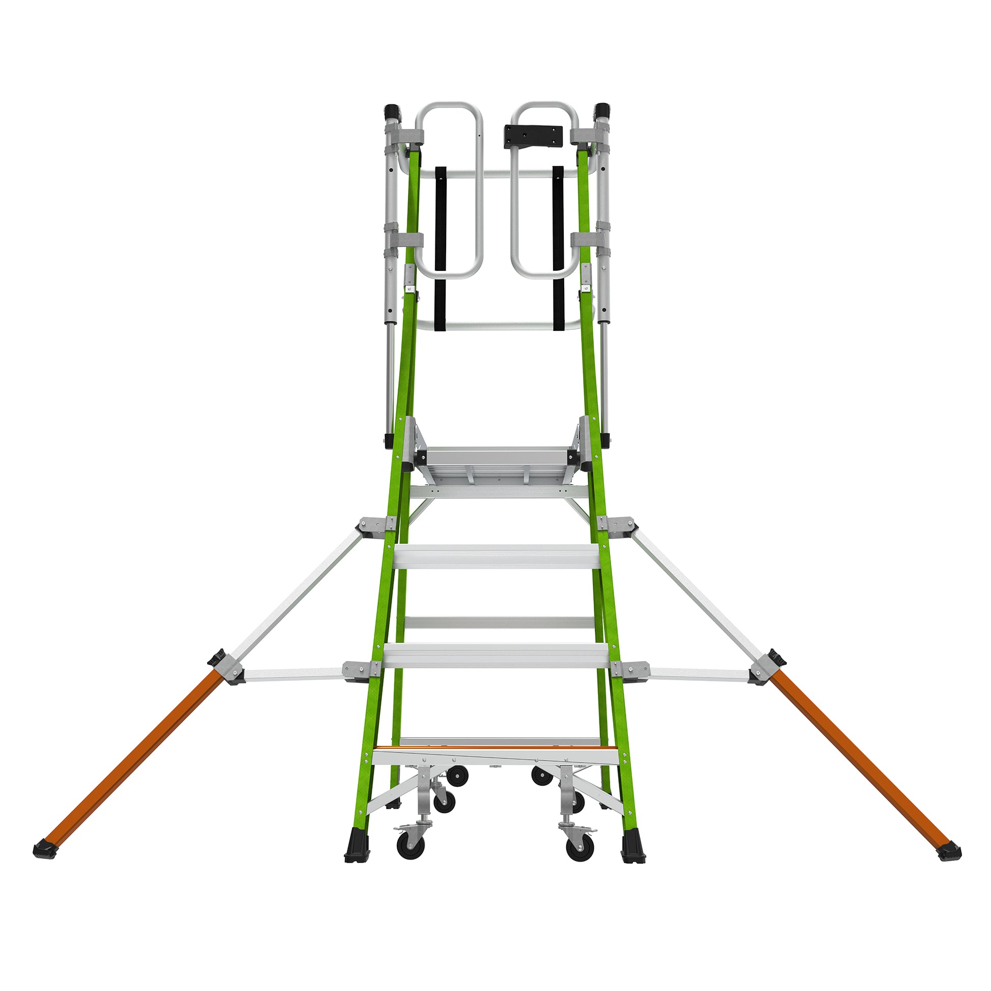 Stay compliant with EN131-7 and OSHA standards without the hassle of tying off to an anchor point. The Safety Cage features adjustable outriggers that significantly increase side-tip stability, making it the most reliable climbing solution for busy job sites.