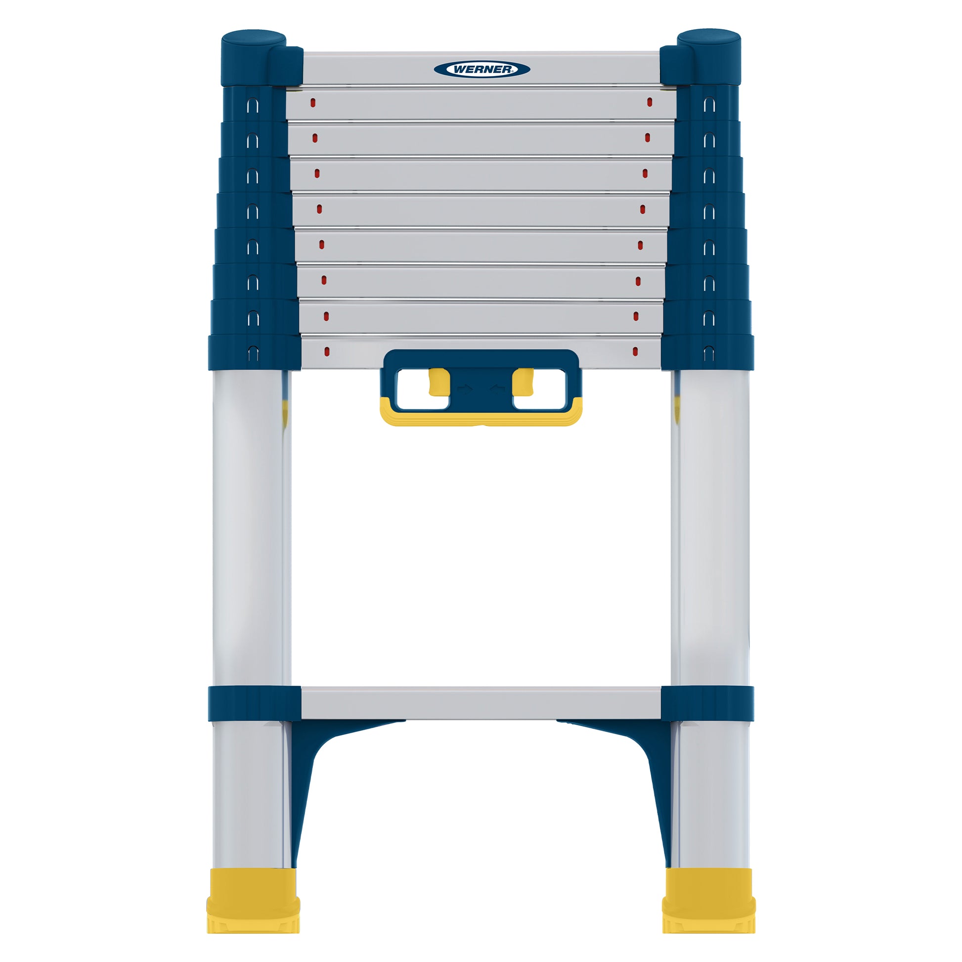 The Werner 3.8m Soft-Close Telescopic Ladder is the premier choice for professionals requiring a high-reach solution that fits into the smallest of spaces. This innovative extension ladder features a compact telescopic design, retracting from a generous 3.8m reach to a mere 0.88m in seconds. Its portable footprint makes it perfect for transport in small vans or storage in tight cupboards without sacrificing industrial strength.